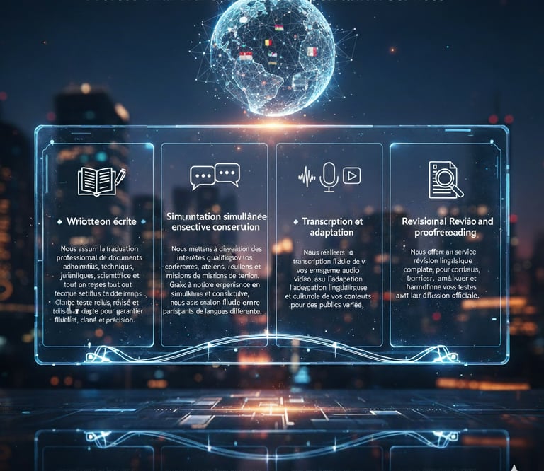 Founded by experienced translators and interpreters, our goal is to ensure fluid and authentic communication between languages and cultures, while respecting cultural and institutional contexts.
